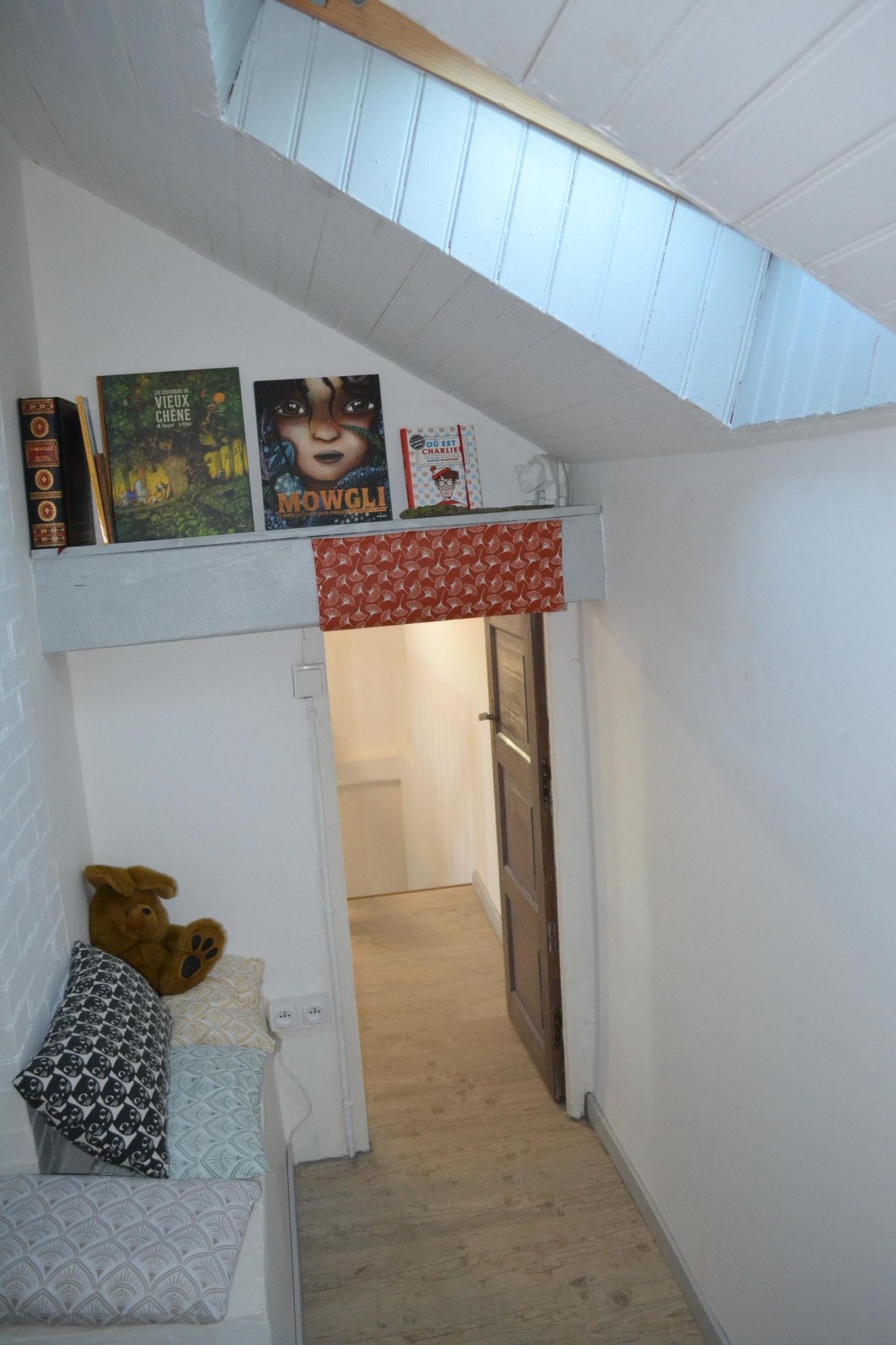 A l’étage 1 chambre avec 1 lit en 140 et une chambre enfants avec 2 lits superposés en 90.